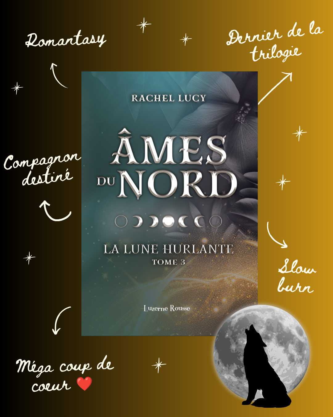 Je suis tellement heureuse de vous parler d’Âmes du Nord, troisième et dernier tome de la trilogie de La lune hurlante de Rachel Lucy !! Je ne vous cacherai pas que j’ai adorée ma lecture et j’irais même jusqu’à dire que ce tome et mon préféré de la série !!