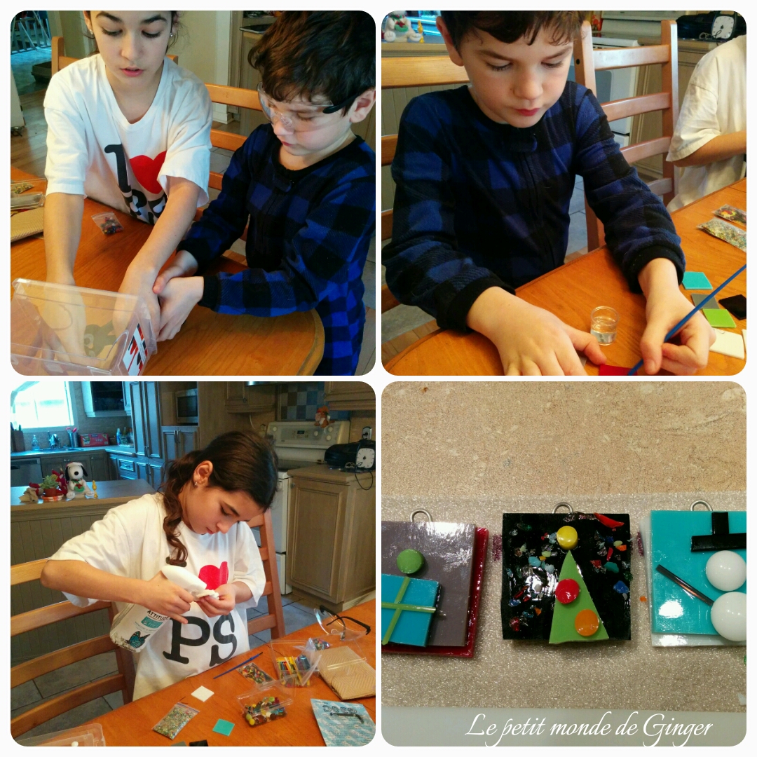 La pince mosaïque coûte 44,95$, mais à l’achat du kit de départ, elle revient à seulement 20$. Elle n’est pas nécessaire pour les pièces minces (elles se cassent facilement avec les doigts), mais pour les plus épaisses, c’est vraiment pratique. La manipulation demande une certsaine vigilance parentale, car ça reste du verre et ça peut être coupant. Il faut faire la coupe dans le bac et porter des lunettes de protection pour les yeux (se vendent 2$ au Dollorama).