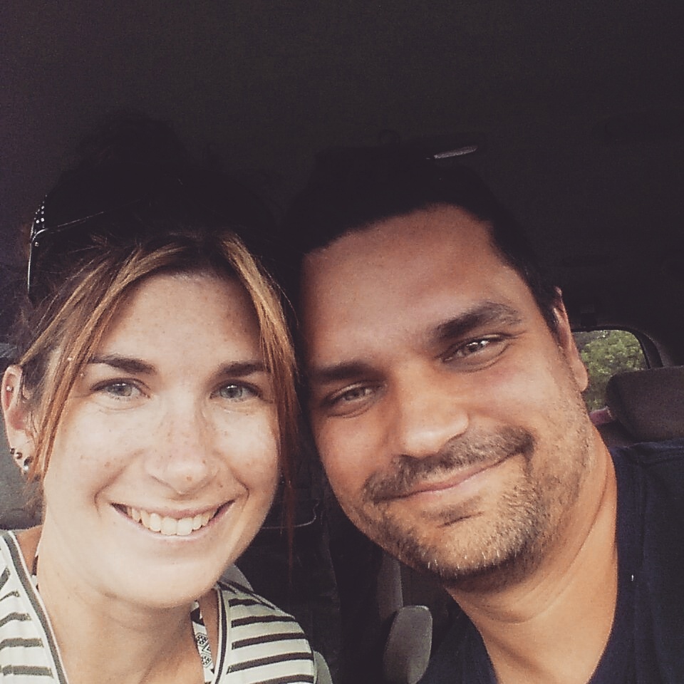 Moi et chéri à notre arrivé aux glissades d’eau 🙂