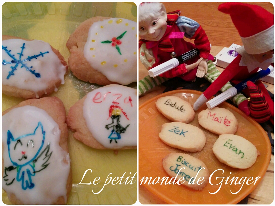 Comme j’avais fait des biscuits et que je n’ai pas eu le temps de les décorer, les lutins ont décider d’en décorer quelques uns. Les enfants ont voulu en faire à leur tour et ça a transformé un soir ordinaire de semaine en un atelier de décoration de biscuits en famille.