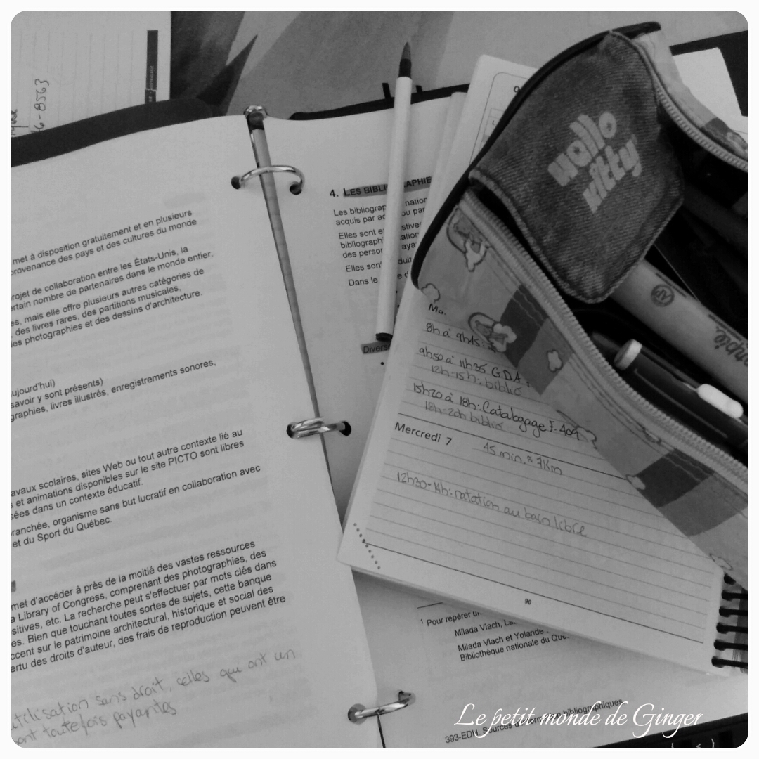 J’aime l’école. J’aimais travailler, mais je me sens beaucoup plus épanouie depuis que je suis retourné sur les bancs d’école. J’y resterais toute ma vie. Si je m’écoutais, j’irais faire ma maîtrise en bibliothéconomie…Mais outch, 5 ans d’étude encore ? Sans oublier que je n’ai jamais fait de cours universitaire et que ça me fait peur…Je ne suis pas particulièrement doué à l’école, je dois énorméement étudier, je n’ai aucune mémoire et les examens me stresses beaucoup…pas besoin d’ajouter que je détestais l’école quand j’étais plus jeune. Mais pourquoi pas faire un petit certificat ? À temps partiel, en travaillant…Pis tsé après 3 certificats, la maitrise est possible…mais bof, terminer mes études à 40 ans ? Je ne dois pas oublier que j’étudie pour travailler un jour, sans compter que je devrai rembourser mes prêts. Mais reste que j’apprécie beaucoup le fait d’être retourné aux études. J’ai une certaines flexibilité que je n’aurai pas au travail. Oui, j’ai parfois des journée de 8h à 20h, mais j’ai aussi des journées de congé dans le milieu de la semaine…Bref, je crois que tant que je ne suis pas dans le ”vrai monde”, je me sens en sécurité…