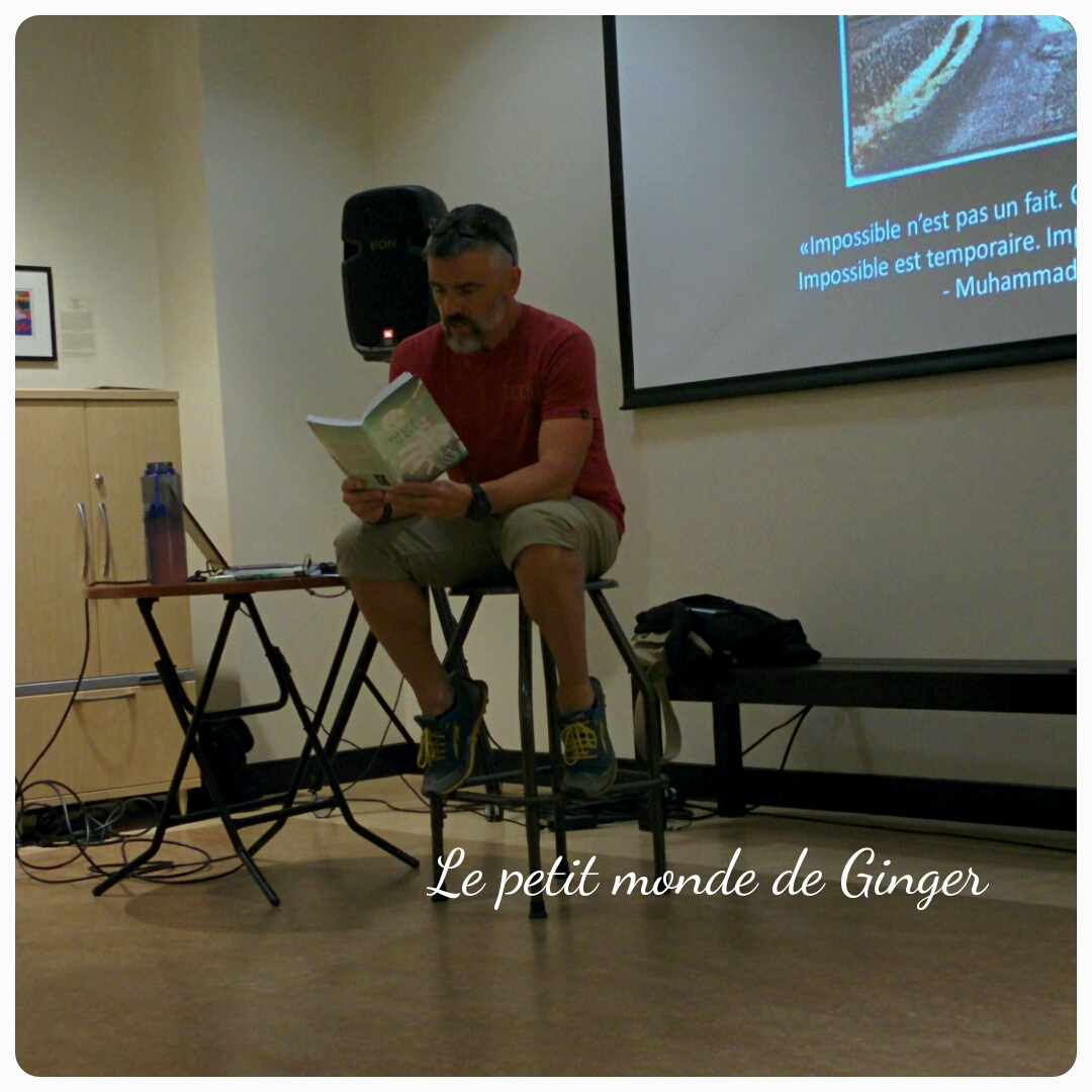Patrice Godin qui lit un extrait de son premier roman Boxer la nuit