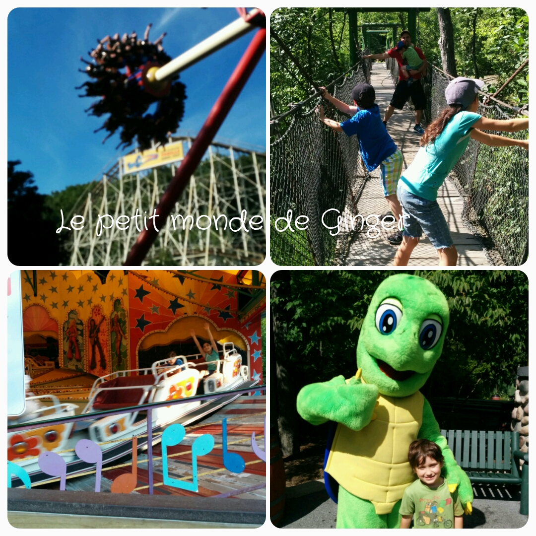 Un des gros avantages avec les passes annuelles de La Ronde, c’est que nous avons la gratuité dans les autres parcs appartenant à Six Flags. Nous sommes parties tôt de la maison et nous sommes arrivés au parc Great Escape peu de temps après l’ouverture, mais nous étions tout de même stationné très près de l’entrée. Nous avons mangé le pique-nique que l’on s’était préparé et nous sommes ensuite entré. Mon premier constat fut qu’il y avait vraiment peu de monde. 2 heures après notre arrivée, nous avions déjà fait plusieurs manèges. Je dois spécifier que nous étions le premier lundi matin après les vacances de la construction, mais il y avait tout de même quelques camps de jours. Les manèges pour lesquels nous avons eu le plus d’attente furent les signes sur l’eau et la pitoune. Et quand je parle d’attente, je parle de 30 minutes à peine. Un employé nous a dit que les personnes qui achètent les passes à accès rapides sont plutôt rare, car ça ne sert à rien. La seule journée ou les gens le font est le 4 juillet, car c’est la plus achalandée de l’année. Je dirais que le parc est un peu plus familial que La Ronde, les montagnes russes sont plus petites que le Monstre par exemple, mais comme on était en famille, c’était parfait. Et les règles de sécurité ne sont pas les mêmes. Ezekiel 4 ans qui ne peut pas faire le Phoenix à La Ronde peut faire son équivalent à Great Escape, par exemple. Et que dire des passeports bouffe !! Nous en avons que 2, mais les portions sont tellement gigantesques que l’on réussissait à se nourrir tous les 5 avec 2 repas. Nous sommes restés jusqu’à la fermeture et nous y sommes retournés le lendemain. Nous avons profité de la matinée pour faire les manèges que nous n’avons pas eu le temps de faire la veille et nous avons passé tout l’après-midi dans le parc aquatique pour nous rafraîchir. Comme c’est à seulement 3 heures de route et que l’on a décidé de renouveler nos passes, nous y retournerons l’an prochain. Sinon, j’ai aussi entendue plusieurs commentaires positifs au sujet du Six Flags de Boston, mais ça fait un peu plus de route à faire .